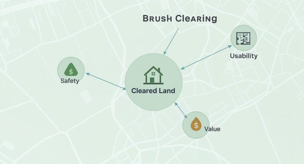 This quick visual breaks down how clearing your land directly boosts its safety, usability, and overall value.